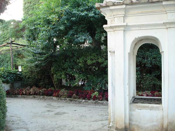 Proceeding between ancient walls lined with cypresses and lime trees, you come to the Moorish Court or Cloister, left open on one side, with 36 columns still intact on the side facing you and two complete arches with six double columns on the lefthand side. In the lower part there are three pointed arches on each side, surmounted by a loggia formed of double columns decorated with entwined and knotted foliage. The top level, with three oculi on each side, is decorated with a frieze of double tortile earthenware columns.